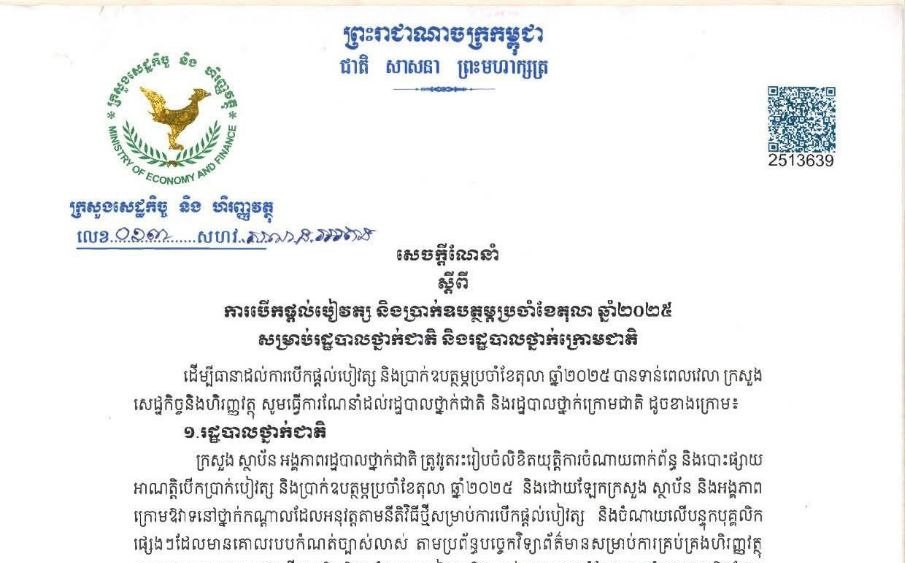 ក្រសួងសេដ្ឋកិច្ចនិងហិរញ្ញវត្ថុ បានរៀបចំកិច្ចប្រជុំថ្នាក់ដឹកនាំក្រសួង ដើម្បីពិនិត្យ និងសម្រេចលើសេចក្តីព្រាង