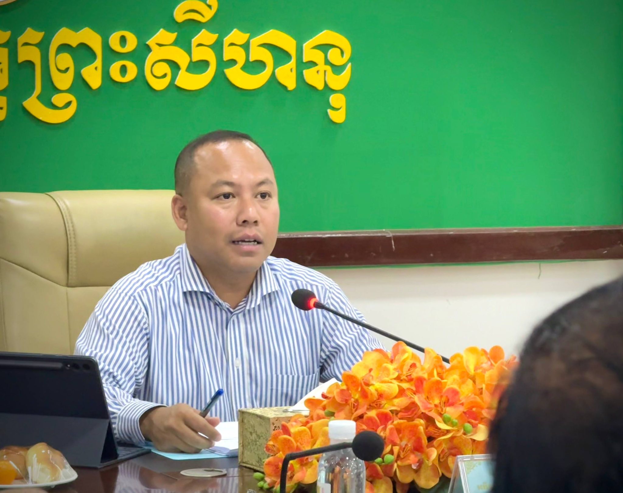 លោក ហេង សុជាតិ អនុប្រធានមន្ទីរ តំណាងលោកប្រធានមន្ទីរសេដ្ឋកិច្ច និងហិរញ្ញវត្ថុខេត្តព្រះសីហនុ បានអញ្ជើញចូលរួមកិច្ចប្រជុំពិគ្រោះយោបល់លើលទ្ធផលបឋមស្តីពីការសិក្សាវាយតម្លៃហេតុប៉ះពាល់បរិស្ថានពេញលេញសម្រាប់គម្រោងបង្កើតមណ្ឌលសន្និធិប្រេងឥន្ធនៈរបស់ក្រុមហ៊ុន ភីស ភេត្រូលៀម (ខេមបូឌា) ឯ.ក Peace Petroleum (Cambodia) Co., LTD ក្រោមការដឹកនាំដោយលោក ឡុង ឌីម៉ង់ អភិបាលរងខេត្តព្រះសីហនុ និងមានការអញ្ជើញចូលរួមពីតំណាងមន្ទីរ-អង្គភាពពាក់ព័ន្ធ នៅសាលប្រជុំក្រុមប្រឹក្សាខេត្តព្រះសីហនុ។